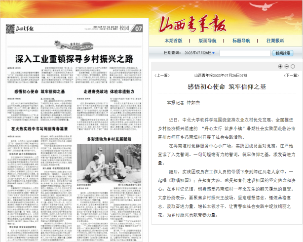 近年来,学院团委在校团委的帮助和指导下,立足本院中心工作,遵循育人理念,紧扣时代主题,大力推进大学生社会实践活动,进一步发挥共青团第二课堂活动和社会实践工作在“全员育人、全过程育人、全方位育人”的重要作用,2023年度学院暑期实践取得丰硕成果,与汾西县政府共建实践基地1个,在中青在线、山西青年报等重要媒体刊发调研报告、新闻稿件20余篇,实践课题转化申报“挑战杯”大学生课外学术科技作品获山西省二等奖1项,在社会影响力、覆盖面和育人效果方面取得良好成效。