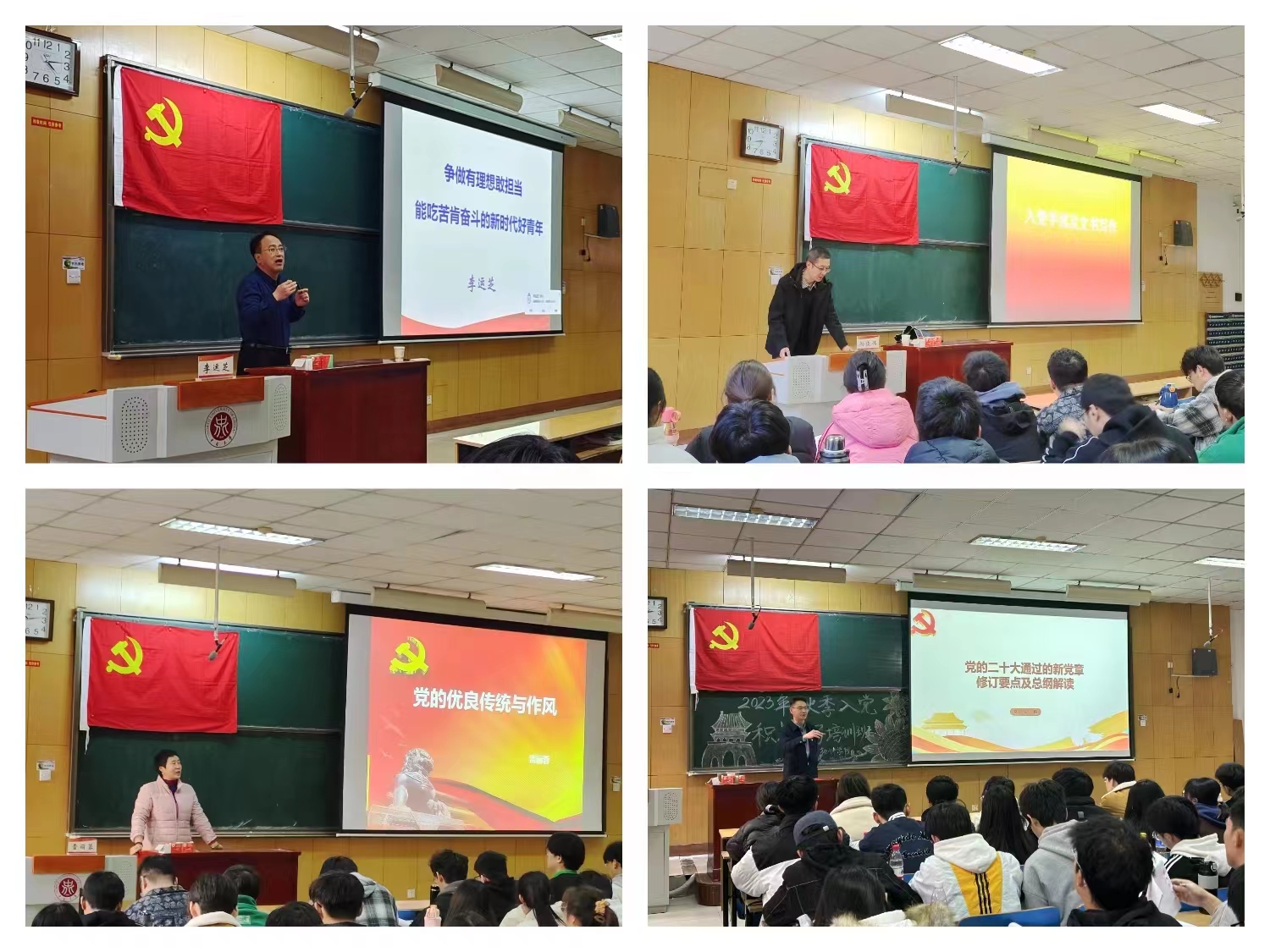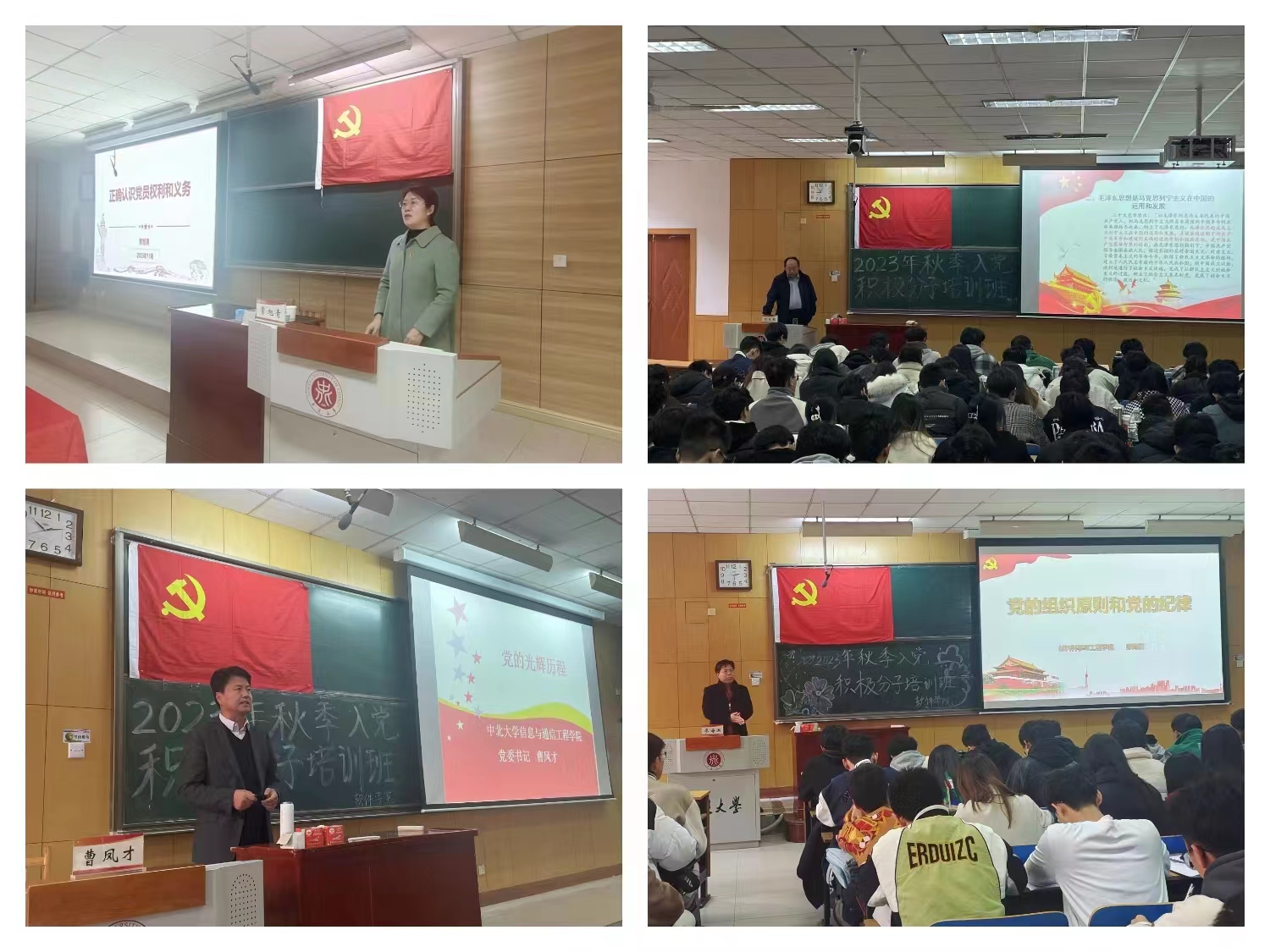 培训中,yabo888vip网页版登录党委书记常旭青、马克思主义学院党委书记段义权、信息与通信工程学院党委书记曹凤才、材料科学与工程学院党委书记廖海洪、原能源与动力工程学院党委书记李运芝、人文社会科学学院党委书记孙俊伟、党委宣传部老师雷丽蓉、yabo888vip网页版登录党委副书记兼副院长高宏图分别以《正确认识党员权利和义务》《党的指导思想》《党的光辉历程》《党的组织原则和纪律》《争做有理想敢担当能吃苦肯奋斗的新时代好青年》《入党手续及文书写作》《党的优良传统与作风》《党的二十大通过的新党章修订要点及总纲解读》为题进行了专题党课讲授。老师们的课程充实而深刻,极具思想性。通过展示丰富的历史资料、详实的数据和生动的案例,结合党的历史与新使命,从多个维度深入阐述了党的光辉历程、伟大贡献和新时代责任;从他们的工作经验、人生阅历中,诠释了党课培训的重要意义,为广大学员带来了一场场深入解析。同时老师们对入党积极分子提出的问题作出了细心、严谨、耐心的解答,让学员们受益匪浅。