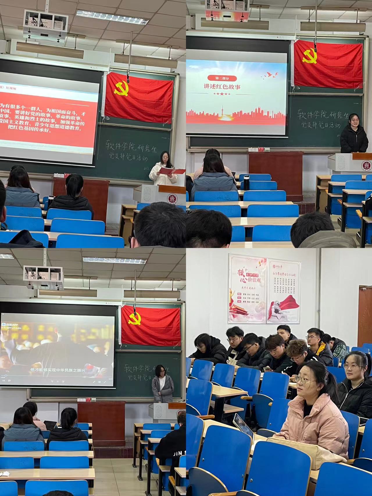 活动从观看视频短片《生来倔强》开始,视频中回顾了我国从1840年鸦片战争以来经历过的各种历史大事件,告诉大家正是因为无数革命先烈的无私奉献才有了今天强大的祖国和我们幸福的生活。随后,曹雅婕和刘诗涵分别讲述了杨靖宇同志和李大钊同志的红色故事,让大家重温了历史、了解了伟人,并将李大钊“为世界进文明,为人类造幸福,以青春之我,创建青春之家庭,青春之国家,青春之民族,青春之人类,青春之地球,青春之宇宙。”的名言铭记于心。最后,所有党员同志分享了自己心目中伟大英雄的故事和事迹,并畅谈了自己的心得和感想。