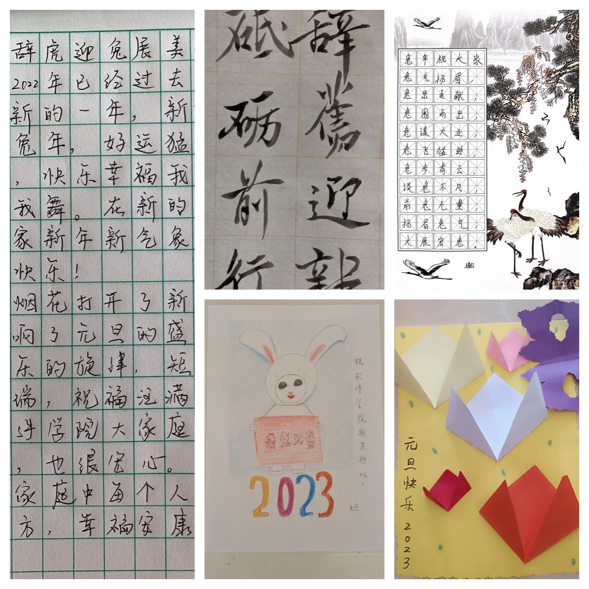 马巧梅老师用一幅栩栩如生的前兔无量画像祝福大家事业进步;王素红老师的硬笔书法写出了对全校师生的祝福;魏跃亲老师用书法写出了”辞旧迎新,砥砺前行“的新年愿望;张仙敏老师以一篇小作文祝福大家快乐有方,幸福安康;刘康驰老师一曲高歌祝福大家新年心气象......多才多艺的老师们以各种形式表达着自己对祖国,对学院,对家人,对学生的祝福。