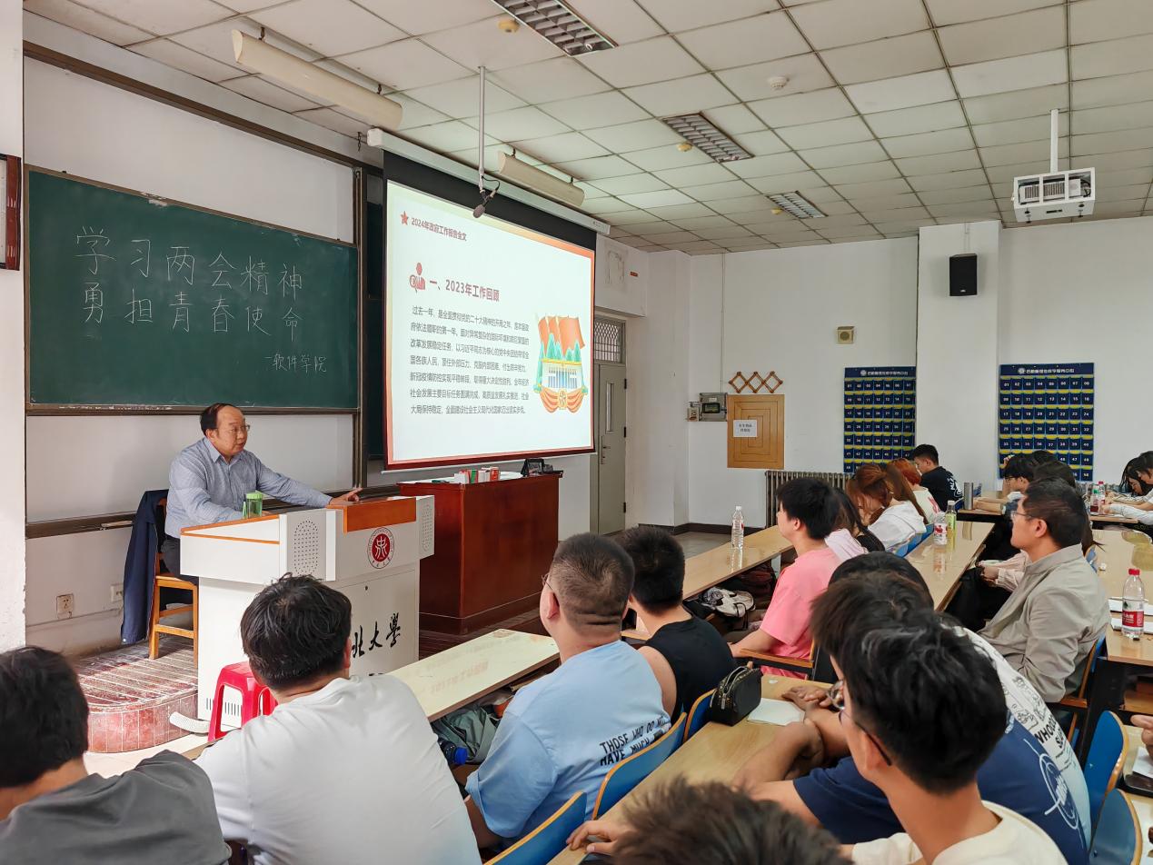 段义权书记以“使命重在担当,奋斗创造未来”为主题告诫同学,要坚定正确的信仰信念,坚持以习近平新时代中国特色社会主义思想为指导,认真学习贯彻“两会”精神,深刻领悟“两个确立”的决定性意义,增强“四个意识”、坚定“四个自信”、做到“两个维护”,争做马克思主义中国化时代化的践行者,努力成长为堪当民族复兴重任的时代新人,在推进强国建设、民族复兴伟业中展现青春作为、彰显青春风采、贡献青春力量,奋力书写为中国式现代化挺膺担当的青春篇章。