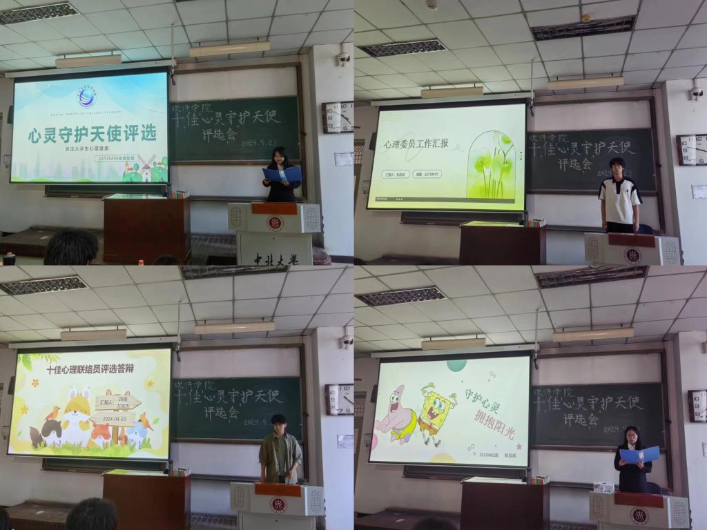 答辩期间,参选的心理联络员充分展示了其工作期间积极参加培训、举办心理健康主题班会、辅助学院心理测评、组织团体辅导、开展读书观影活动、完善朋辈辅导、协助开展危机排查、利用网络媒体宣传心理健康知识等多方面的优秀工作实效,使同学们对心理联络员这个普通的班委身份有了更全面更深层次的认识。经过激烈角逐,来自22130402班的韩思琪等十名同学荣获学院2024年“十佳心灵守护天使”称号,心理站22130427班邵晨星等四名同学获得优秀工作者称号。