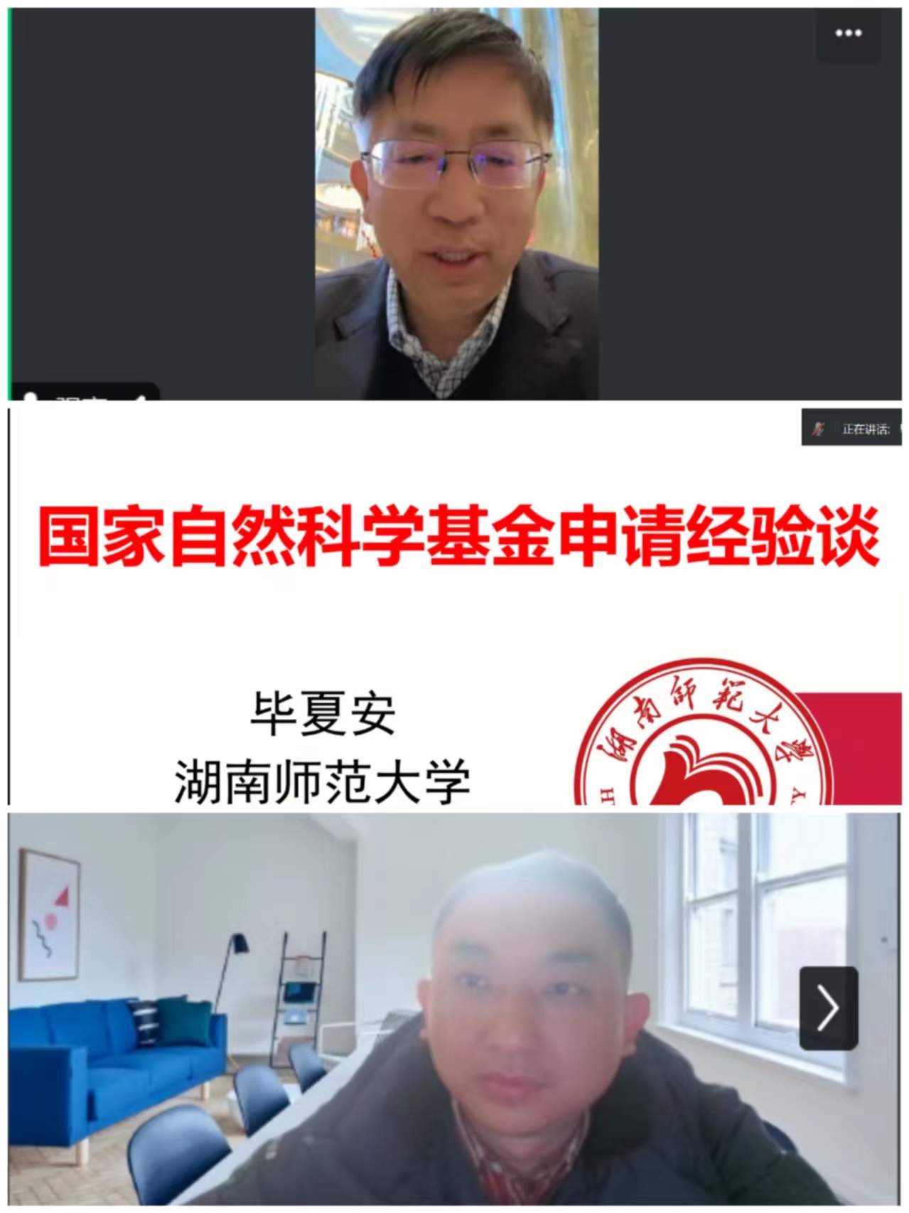 为了进一步提升学院在2024年国家自然科学基金申报中的竞争力,yabo888vip网页版登录于1月28日上午组织了一场线上经验分享会。分享会特邀湖南师范大学毕夏安教授主讲,强彦院长主持了会议。